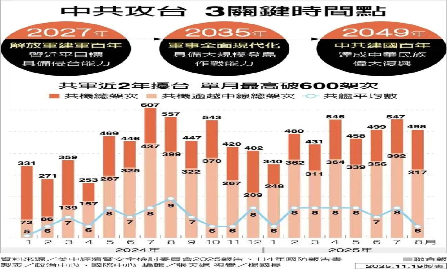 隸屬美國國會的美中經濟暨安全檢討委員會十八日發布年度報告,針對北京可能入侵台灣時間表,報告點出二○二七年、二○三五年和二○四九年三個潛在時間點。委員會副主席、美國國防部印太安全事務部前助理部長薛瑞福在發表報告的聽證會上說,中國國家主席習近平指示人民解放軍在二○二七年做好攻台準備,非攻台日期。薛瑞福說,中國計畫在二○四九年達成「中華民族偉大復興」,而統一台灣被視為民族復興的一環,指中國的意圖非常明顯。報告指出,根據美國情報評估,習近平指示解放軍必須在二○二七年具備成功入侵台灣的能力,但未必是入侵日期;二○二七年之所以重要,因為是解放軍建軍一百周年,而習近平宣布要加速在二○二七年完成機械化、信息化和智能化目標。報告並指出,北京預計在二○三五年完成軍事現代化目標,並完成通往台灣的高速鐵路,這也被分析師認為是中國入侵台灣的潛在時間點之一;由於台灣官方不理會中國興建高速鐵路計畫,北京達成目標的方法只有掌控台灣。而二○四九年則是中華人民共和國建國一百周年,習近平希望屆時實現「全面建成社會主義現代化強國」,並「以中國式現代化全面推進中華民族偉大復興」;報告稱,北京明顯指出希望在建國百周年以前統一台灣,尤其習近平在二○二二年稱解決台灣問題是實現中華民族偉大復興的必然要求。薛瑞福表示,他不能說二○四九年一定就是中國入侵台灣的時間,也認為中國期待以非武力的方式取得勝利,但從中國的論述來看,其意圖非常明顯。至於二○二七年,薛瑞福認為,中方更關注在二○二七年取得攻台的能力,而不是攻台的日期;習近平是希望解放軍在能力上做好準備,二○二七年未必是開戰的時間點。此外,報告建議美國國會指示國務院和台灣合作,開啟對外軍售案,旨在提供非武器的支持和服務,以推進美國在地區的定位,強化美國在台灣周邊的嚇阻能力。報告指出,這項對外軍售案應強化美國現行倡議,包括美菲在呂宋島和巴拉望島達成的加強國防合作協議,以及美國在日本西南島鏈上的努力,還有針對承認台灣的太平洋島國;報告表示,在這項合作案下,台灣會出資挹注第三國專案,最後會有利於台灣維護自身安全。