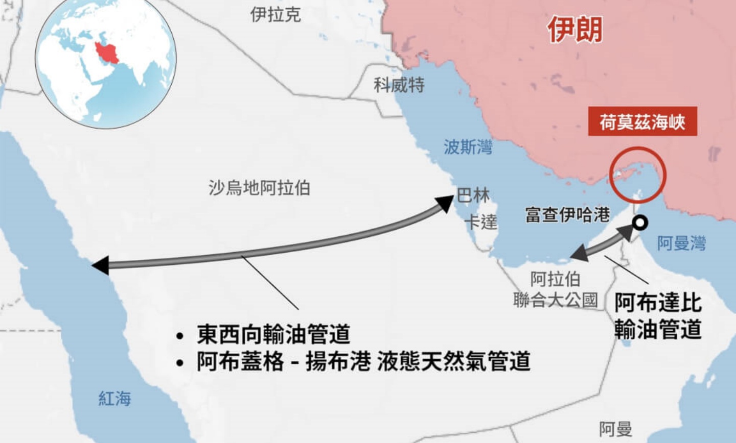 不過,BBC引述美國政府資料指出,沙烏地有1條長達1200公里、橫越阿拉伯半島的東西向輸油管,從東部大型油田延伸至紅海沿岸的揚布港(Yanbu),每日最多可輸送500萬桶原油。