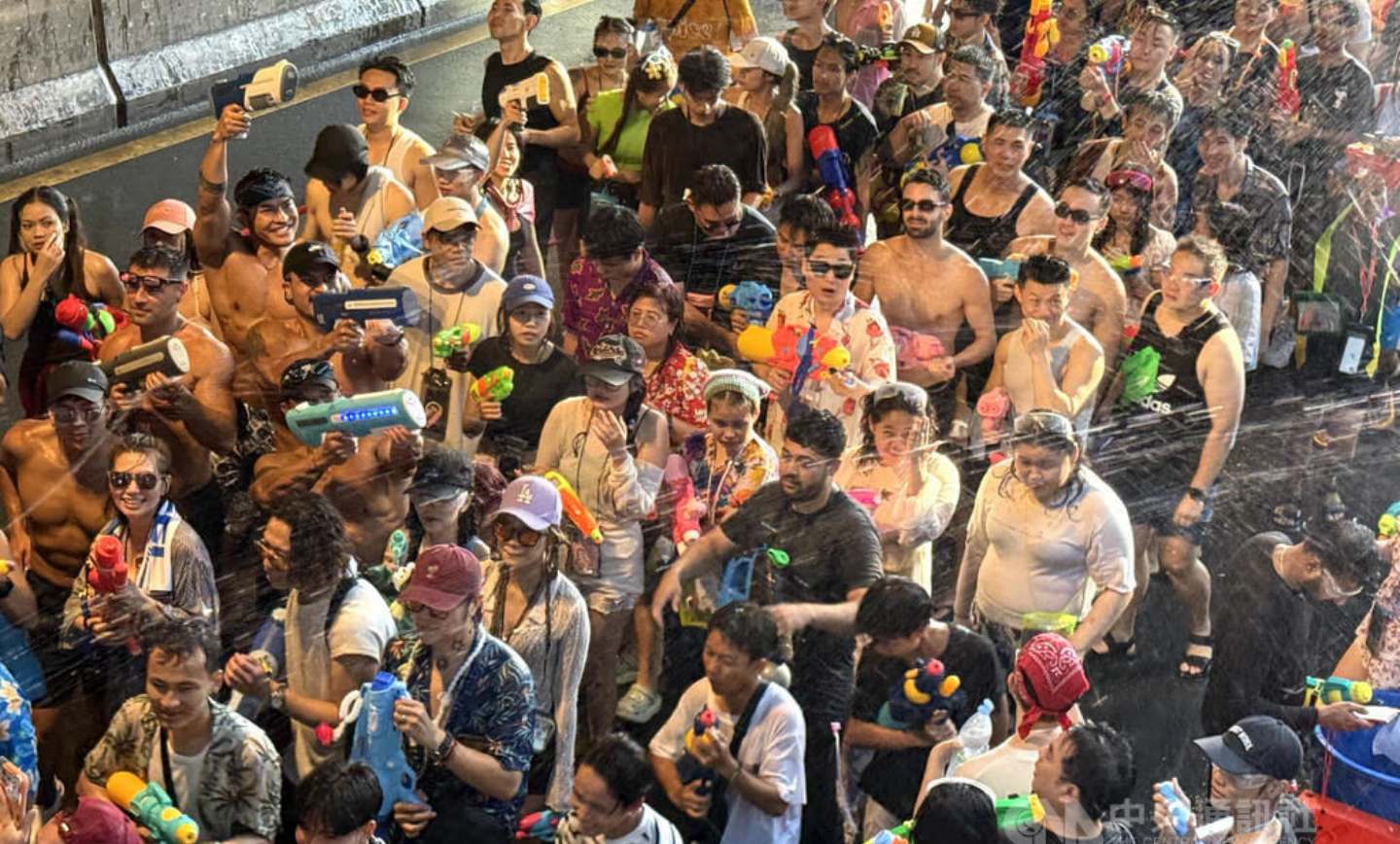 泰國潑水節登場,曼谷是隆路今天封街湧入萬人歡慶,人們手持水槍互相射擊,也有人直接灑水,幾乎每個人都全身濕透,氣氛嗨翻天,宛如大型街頭水戰。不過現正值酷暑,曼谷最高溫達攝氏37度,當局呼籲慎防中暑。