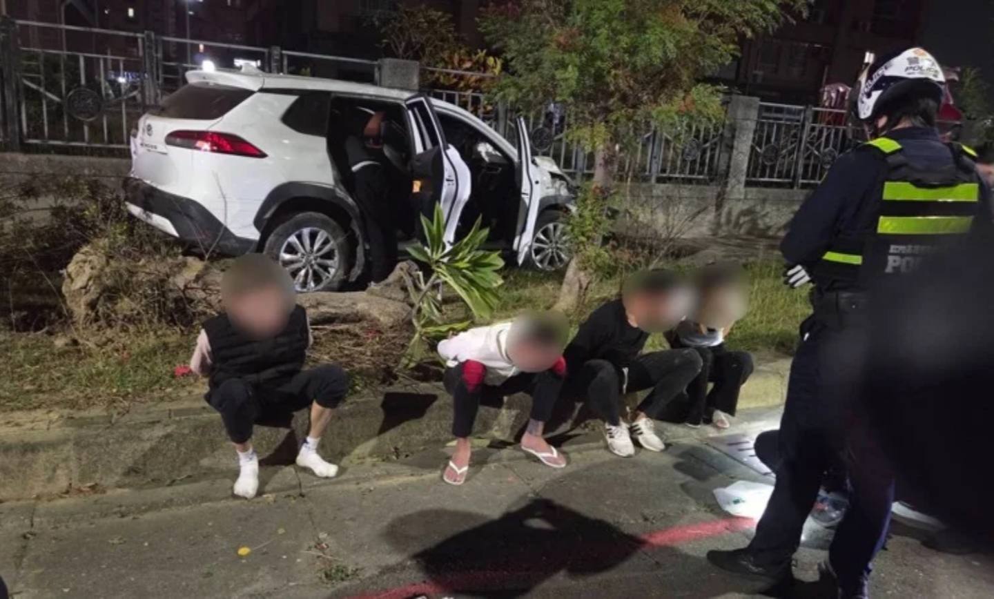 警方到場時,發現劉男駕駛白色轎車駛離現場,警方隨即尾隨追查,但劉男開車經過緯九路,擦撞路旁工程車,失控衝向樹叢後撞牆才停車。